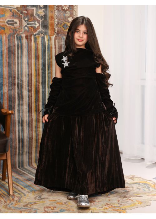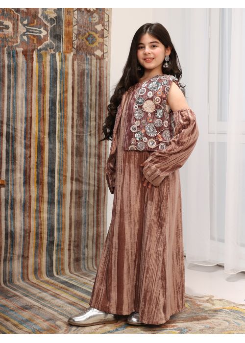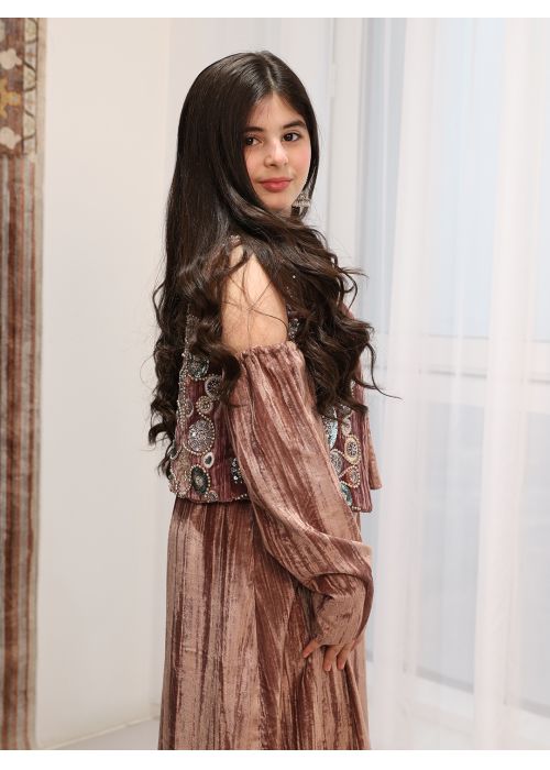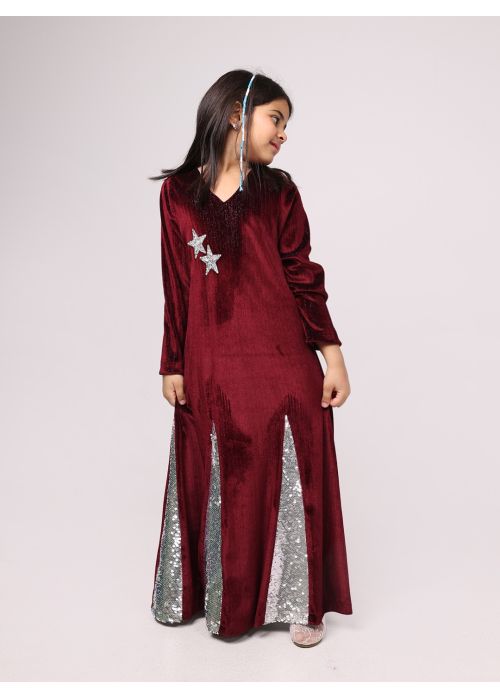 Velvet maroon kids kaftan