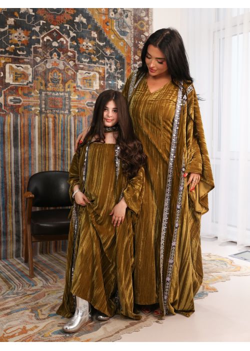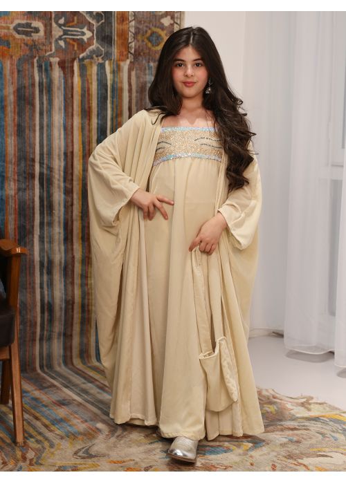 bisht with sleeveless dress and gloves it comes with Gergean bag